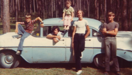 Picture is me driving and my two brothers and two cousins on each outer sided.